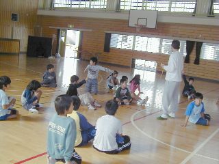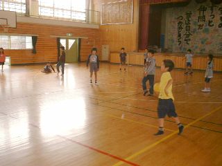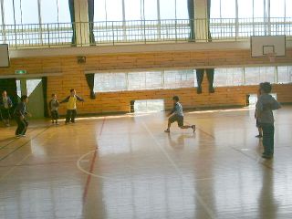 | そ〜れ、当たれ〜!思い切ってボールを相手にぶつけよう。(でも小さい子にはどうしても手加減することになるな〜・・・・。) | あっちだ!ボールをまわせ〜!(おいおい、みんなもう少しやる気を出してくれないかな・・・。これじゃあ、オレ一人がバカみたいじゃん?) |