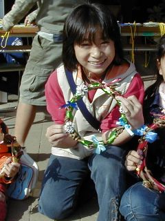 | 「へぇ〜」お母さん方も先生の妙技に見とれる。 | 「う〜ん、私にできるかな〜?」 |