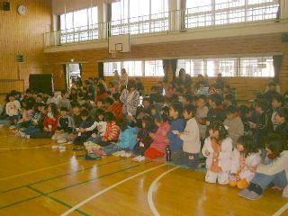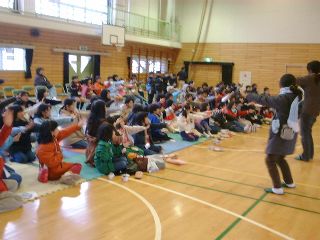 クリスマスコンサートが終わった後の体育館では、みんなお待ちかねのビンゴ大会が大いに盛り上がりをみせました。コンサートとビンゴ大会の間は準備のため少し時間が空いたのですが、すかさず人形劇を演じてくれた都立大のお兄さん・お姉さんが登場して簡単なゲームを展開。ここでわっと盛り上がって、準備に時間がかかったのを感じさせない見事なサポートでした。ビンゴは順調にすすみ、残念ながら外れた子も、最後にサンタさんに扮したお兄さん・お姉さんにお菓子をもらってニコニコしながら帰っていきました。また来年会おうね。