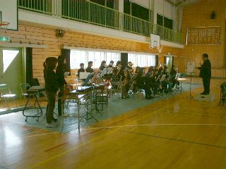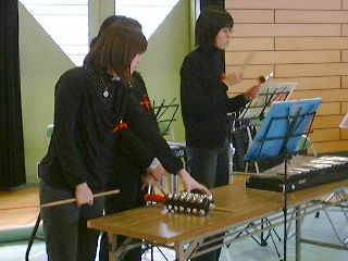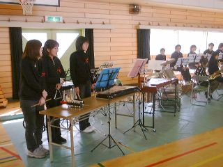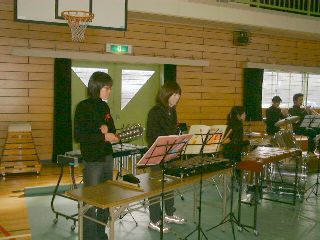 | つい口ずさみたくなるような楽しい音楽が体育館に鳴り響きます。管楽器のパート。 | 打楽器のパート。こちらも楽しそうですね。 |