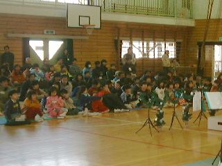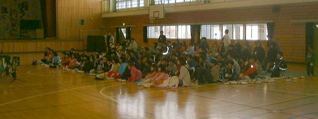 | スタッフも含めて100名ほどが集まった会場。でも体育館が広いので、ちょっと寒いかな? | |