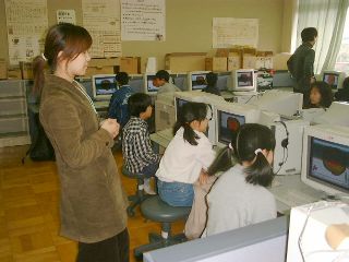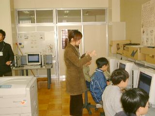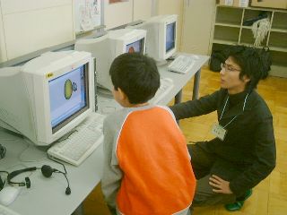 | 「う〜ん、ここはむずかしいね」2人がかりで教えている | 「ここはちょっとむずかしいから、よく操作方法を覚えておくんだよ」 |