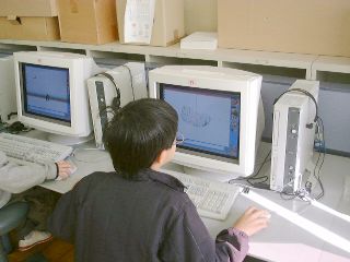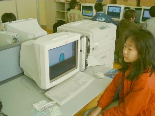 パソコン室では、イーフロンティア社のボランティアの先生がパソコン教室「マジカルスケッチ2」で3D画像作成の授業を開催。難しそうな3D画像がみるみるうちにでき上がっていくのには感心するばかり。