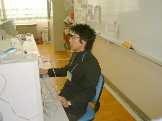 | 「う〜む、もう少しだな」・・・・ところで後ろのスリッパ+裸足は誰? | みんなの作成状況を見守るスタッフの山崎さん |