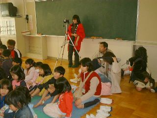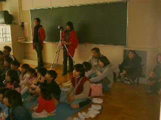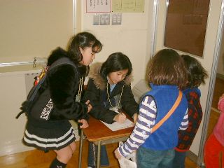 | 大人でもつい引き込まれてしまうほど、楽しいストーリー。お父さん、お母さんもつい我を忘れて見入っている模様。 | 「受付じゃつまらないかと思ったら、そうでもないじゃん」上級生にも楽しんでもらえたようです。 |