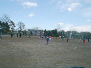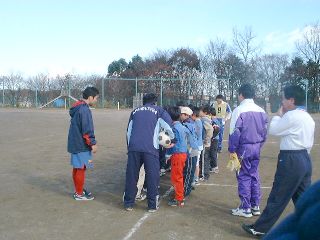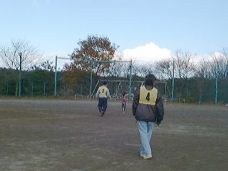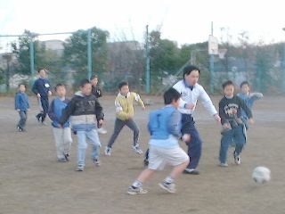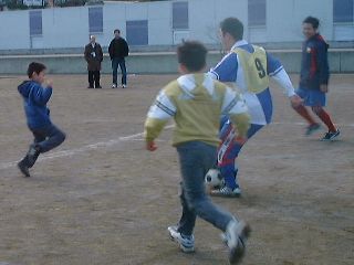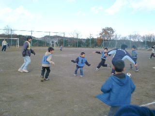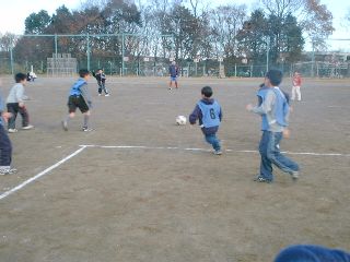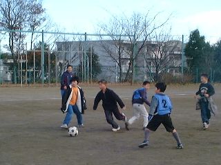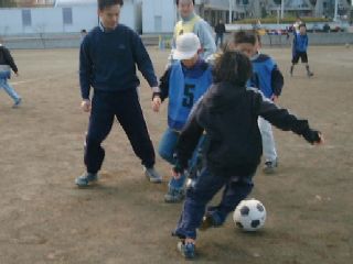 | 「おっと、こっちだ!」「それいくぞ!」お父さんがんばっています。 | 「あ〜、何で抜かれたんだ〜?」見事なドリブルで相手を抜いていく。(これにはカメラマンも感心した) |