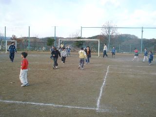 校庭ではサッカーに元気な子供たちとおおぜいのお父さんが集合。特にヒューレット・パッカード社のボランティアの方が数名参加。一般のお父さんもたくさん集まって、さながら大人対子供の対決の様相。