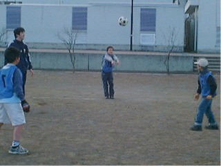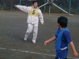 | 大人が3人いれば安心・・・でもないか。すぐ後ろに敵が迫っているよ。 | 足さばきも見事。バランスがとれているね〜。 |