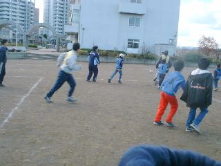 | 軽くフェイントで目の前の相手をかわす。 | 「よ〜し、とったぞ!」「パスだ、パス!」「走れ〜!」 |