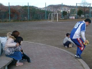 | がんばりすぎてちょっと休憩状態のサッカー少年も・・・ | 「お父さんお疲れ様」「はぁ〜、子供といっしょに走り回ると疲れるよ」・・・・でもそれは心地よい疲れのはずです。 |